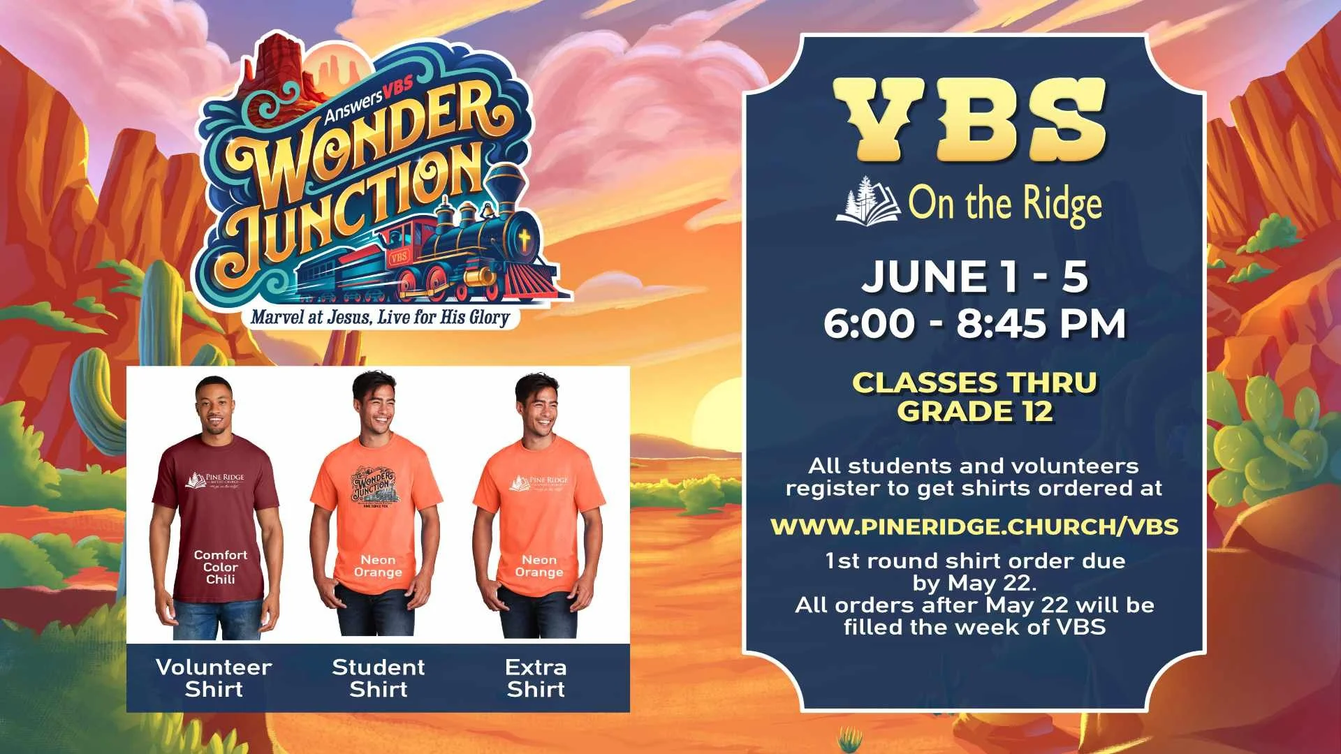 In order to guarantee a T-shirt prior to VBS, register by May 22nd. All orders after May 22nd will be delivered during the week of VBS.